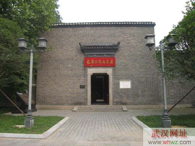 武昌毛澤東舊居位于武昌都府堤41號,是毛澤東1927年主持農(nóng)講所工作并在武漢從事革命活動時的辦公地兼居所,是當時中共中央農(nóng)委的所在地,也是毛澤東、楊開慧一家最后團聚的地方。毛澤東在這里完成了著名的《湖南農(nóng)民運動考察報告》。舊居坐東朝西,磚木結(jié)構(gòu),青磚灰瓦,四周為硬山榍頭風火外墻,大門為單坡屋檐,墻體有門楣裝飾,朱紅色的板門上裝有門釘、門鈸。占地面積909平方米,建筑面積436平方米,院內(nèi)三進三天井,內(nèi)隔斷均為木質(zhì)板壁和隔扇門窗,后檐有門,貫通呼應(yīng)。地面裝有石質(zhì)雙錢式地漏,廳堂中有亮瓦,采光充分,凈空很高,體現(xiàn)了對武漢氣候特點的適應(yīng),具有典型江南民居風格,體現(xiàn)了武漢地域建筑特點。正門額上木質(zhì)紅色橫匾,上有郭沫若同志題寫的“毛澤東同志舊居”七個金色大字。