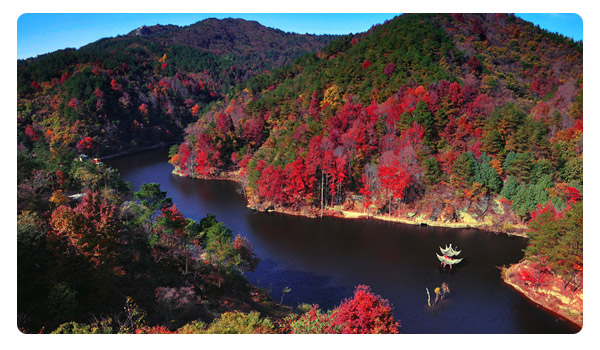 秋天的木蘭清涼寨層林盡染,丹“楓”朝陽(yáng),紅葉似火,景區(qū)萬(wàn)畝森林中,三角楓、五角楓、七角楓、鳥(niǎo)桕樹(shù)和槭科類(lèi)等多類(lèi)秋季紅葉樹(shù)種達(dá)5000余畝, 與此同時(shí),3萬(wàn)多株古銀杏群和千畝圣潔茶花園披金戴銀,果實(shí)累累,紅楓與茶花媲美,金菊與銀杏爭(zhēng)芳,秋水共長(zhǎng)天一色,形成“秋山秋水醉秋楓,如火如荼映蒼 穹;千紅萬(wàn)紫凝,望眼。疑是香山入畫(huà)中”的的壯麗景觀。其面積之大,品種之多,淵源之悠長(zhǎng),葉色之鮮艷,為湖北乃至華中地區(qū)之最。每年11月上中旬到12 月中下旬,為最佳觀賞期。