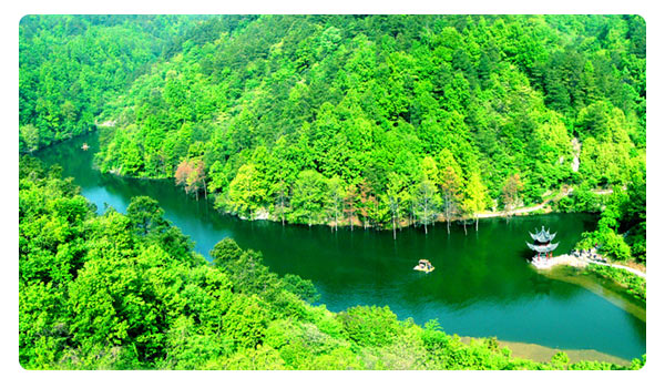 清涼寨景區(qū)因與城市海拔溫差,天生一個(gè)清涼世界,夏季氣溫通常比武漢城區(qū)低8-10℃,一直是喧囂城市的一方凈土和避暑休閑的“夏宮”。當(dāng)“紛紛紅 紫已成塵,布谷聲中夏令新”,層層熱浪推向繁華鬧市之時(shí),木蘭清涼寨旅游度假區(qū),仍是一派青山滴翠,蜂飛蝶舞,水媚風(fēng)柔的春天景象。通天湖、百花湖、碧波 如鏡,茗泉池、清涼池天水一色,宛如一串耀眼的明珠,鑲嵌在花團(tuán)錦簇的畫(huà)廊之中。